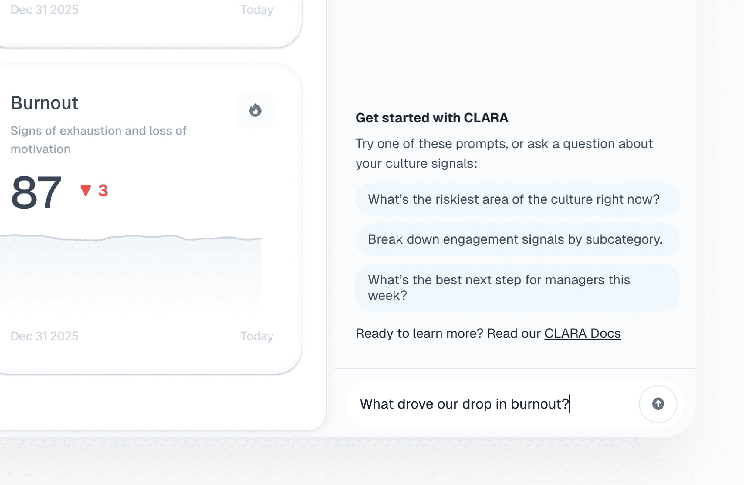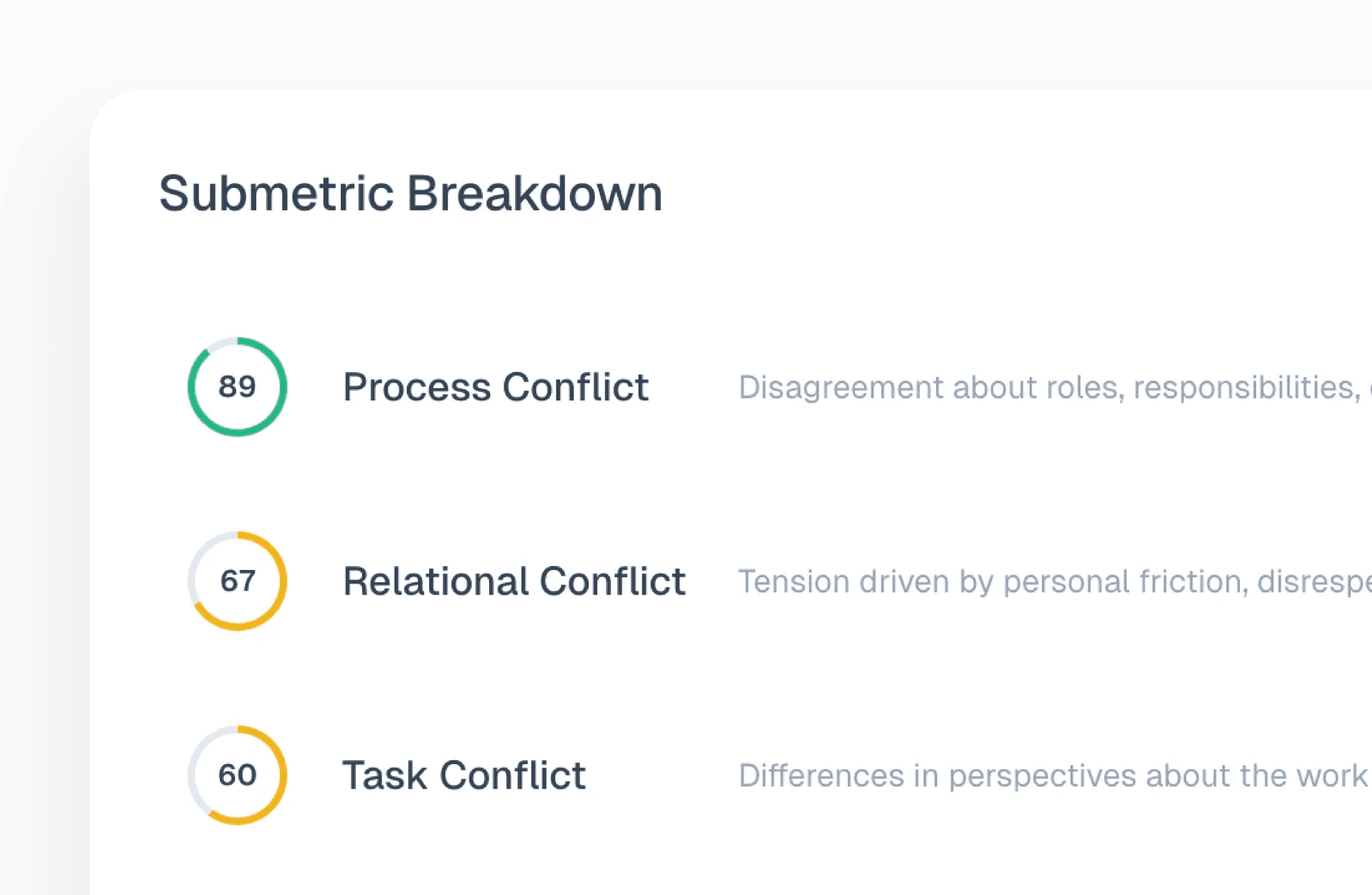 A live culture dashboard pinpoints which metric and sub metric is dragging performance, by org, team, and time range.